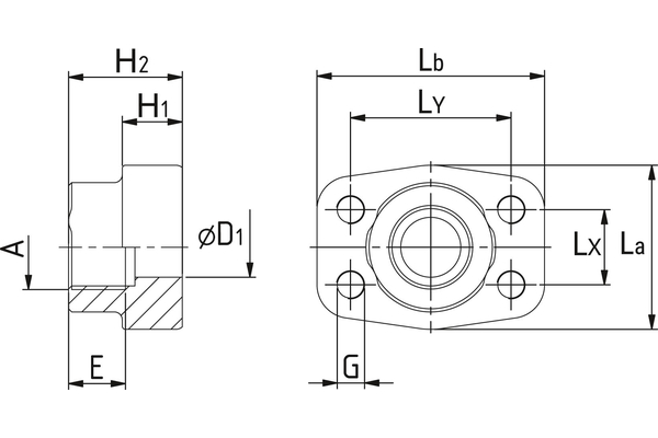 Einteiliger SAE-Flansch mit BSP - Innengewinde