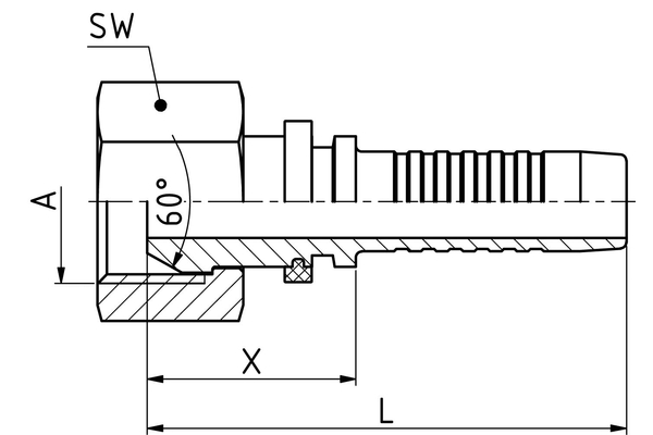 BSP-Dichtkopf, 60°-Konus mit Überwurfmutter, mit BSP-Gewinde