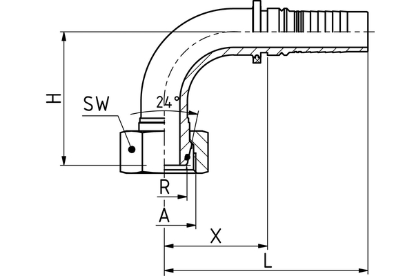 Sealing cone with O-ring according to DIN 3865 (suitable for cone 24 ° DIN 3901 and 3902), union nut heavy series