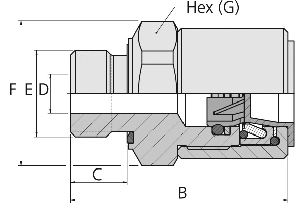 Draaibus. De serie 860 Plug-In draaibus met G buitenschroefdraad (ISO 228/1) en geïntegreerde NBR-rubberafdichting (ISO 1179-2) is verkrijgbaar in de maten 3/8" tot 1". Alleen te gebruiken met de Serie 716-stekkernippel.